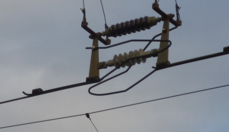 Suche länger. Schnittstellen der Sektoren: Kommen wir zu den Schnittstellen der Fahrleitung. Die einzelnen Sektoren müssen getrennt sein. Dabei sollte diese Trennung aber von den Fahrzeugen ohne Ausfall der Ver-sorgung befahren werden können.