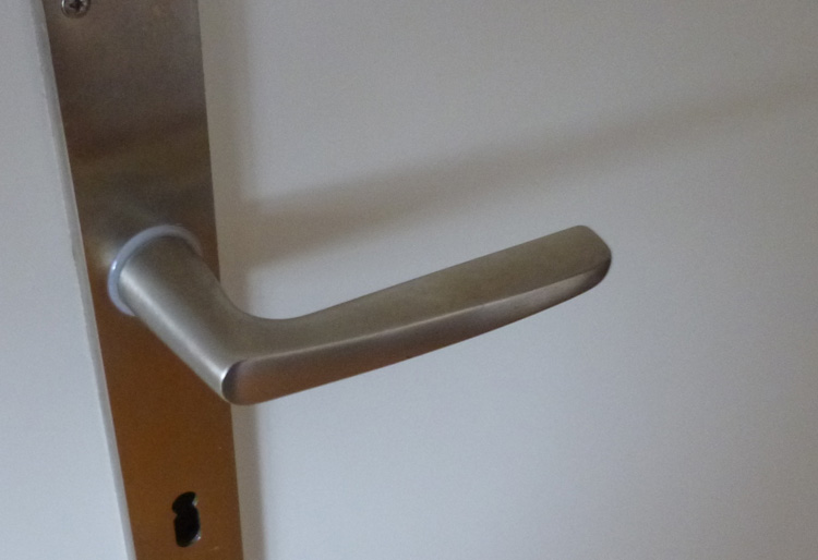 dort die Türfalle aus Metall. Wenn Sie die Türfalle berühren, erhalten sie einen Schlag. Die durch die Reibung beim Gehen erzeugten Ladungen werden über das Metall wieder abgebaut.