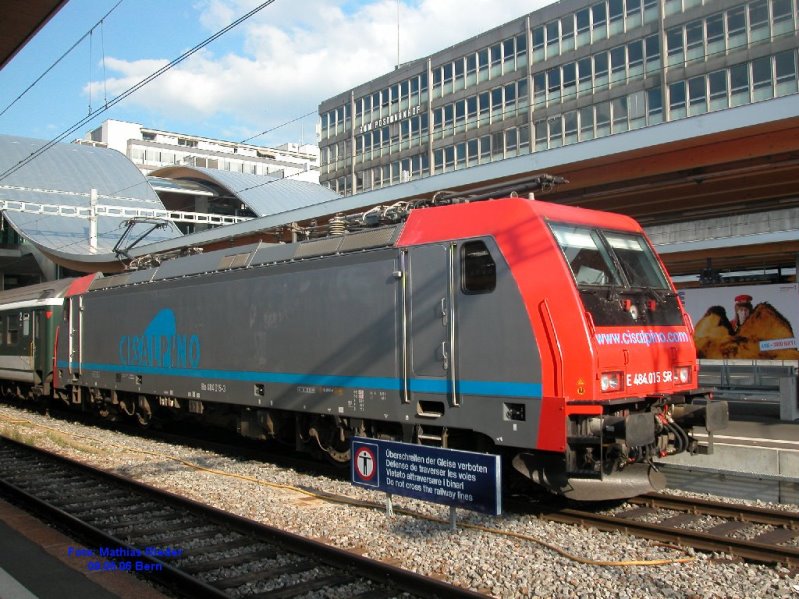 über den Lötschberg und in den französischen Sprachraum der Schweiz. Ab 30. September 2005 tauchte die Lokomotive Re 484 017-9 in den Farben von Cisalpino auf. Sie war zusammen, mit der Re 484 014-6, für diesen Einsatz von SBB Cargo gemietet worden.