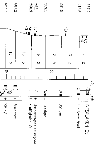Obwohl wir ab der geplanten Route abweichen, bleiben wir auf der bisherigen Strecke. Die Strecke, die wir von Thun bis hierher benutzt haben, wurde seinerzeit von der Thunerseebahn eröffnet. Diese fuhr ja dem See entlang bis nach Därligen. Genau diesen Weg werden wir auf diesem Abschnitt auch einlegen. Daher auch die Begrüssung im Intercity nach Interlaken Ost. Wobei Sie hier auch auf den Regionalzug hätten umsteigen können. An der Reise würde sich wenig ändern, denn das Ziel ist identisch. Einzig einige Haltestellen fehlen natürlich beim Intercity. Doch nun genug der Worte, die Türen werden geschlossen und die Reise geht nun weiter. Dabei verlässt unser Zug den Bahnhof Spiez in Richtung der Werkstätten und des Depots. Er kann seine Fahrt daher ohne Spitzkehre in Richtung Endbahnhof fortsetzen. Nebenan können wir den Leuten noch ein letztes Mal zuwinken, die den Weg nach Visp gewählt haben. Der Zug beschleunigt und dreht ganz leicht nach links ab um eine Unterführung zu passieren. Diese Unterführung trennt den Bereich des Bahnhofes und des Depots. Auch die Züge, die parallel ausfahren können, trennen sich nach der Unterführung und wählen einen anderen Weg. Da wir nach Interlaken fahren, beginnt unsere Strecke sich zu neigen. Wegen der steigenden Strecke nach Frutigen können wir die Anlagen des Depots nicht mehr erkennen. Mit einem Gefälle von 15‰ sinkt die Linie wieder gegen den See ab. Dabei wird das Gelänge mit dem Depot in einer leichten Kurve umrundet. Danach werden keine engeren Kurven mehr befahren und auf der linken Seite können wir auf den See blicken, während der Zug immer mehr an Höhe verliert. Die Strecke ist an dieser Stelle als Doppelspur aufgebaut worden, so dass wir auch Gegenzüge kreuzen können. Nur, das ändert sich schnell und wir befinden uns in einem einspurigen Bereich. Wir haben nun Faulensee erreicht und befinden uns bereits wieder auf einer Höhe von 603 Meter über Meer. In Faulensee legt der Regionalzug einen ersten Halt ein und die Leute können aus- oder einsteigen. Im Intercity bemerkt man eigentlich nur auf der rechten Seite, dass nun das zweite Gleis fehlt und wir uns auf einer einspurigen Strecke befinden. Ändern wird sich daran nichts mehr. Denn wir befinden uns nicht mehr auf einer Transitachse. Nach Faulensee ändert sich am Charakter der Strecke wenig. In weiten Bögen verliert der Zug weiter an Höhe und nähert sich so dem See immer mehr. Rechts wird die Bahnlinie von der Strasse begleitet. Jedoch stellt sich vor uns eine Wand auf, so dass der Zug wohl bald einen Tunnel befahren wird. Bevor das aber der Fall ist, überqueren wir mit dem Zug auf einer Brücke die Strasse. Erst danach nimmt uns der Tunnel auf. Mit dem 143 Meter langen Tunnel Krattiggraben befahren wir auch gleich den ersten Tunnel unserer Reise. Damit können wir einen Bergrücken unterfahren. Da der Tunnel nicht sehr lang ist, schiesst der Zug wieder ans Tageslicht und überquert einen Graben. Links sehen wir nun die Strasse und dahinter den See wir sind nun nur noch wenige Meter über dessen Höhe und können dahinter ganz gut die Berge erkennen. Wir befinden uns nun im alpinen Bereich. Lange können wir uns am See und der Landschaft nicht erfreuen, denn der Zug fährt in den 341 Meter langen Tunnel Krattighalde ein. Damit haben wir bereits den längsten Tunnel unserer Fahrt erreicht, die Strecke mit den langen Tunneln haben wir daher nicht erwischt, dafür werden wir mit dem Blick auf den See und die Berner Alpen belohnt. Die Höhe, die wir von Thun nach Spiez gewonnen haben, haben wir mittlerweile bereits wieder verloren. Nach dem Tunnel erreichen wir die Dienststation Krattighalde. Sie dient der Strecke um mit Zügen Kreuzungen durchführen zu können. Bahnsteige sucht man hier vergebens und der Zug fährt hier normalerweise durch. Nur, wenn ein Gegenzug auf der Strecke unterwegs ist, muss er dessen Ankunft abwarten. Ein klassischer Kreuzungsbahnhof, die als Dienststation ausgeführt wurde. Wir befinden uns nun einen Meter höher, als das in Thun der Fall war. Daher haben die Reisenden auf der linken Seite einen wunderbaren Blick über den See. Wer sich in Spiez für einen Sitzplatz auf der anderen Seite entschieden hat, wir jetzt ausser steilen bewaldeten Hängen nicht mehr viel sehen. Wir sind jetzt im alpinen Bereich und da sind die Hänge steiler, als das in Thun noch der Fall war. Daher empfehle ich Ihnen einen Sitzplatz auf der in Fahrrichtung linken Seite des Zuges. Unmittelbar nach der Dienststation folgt eine Kurve nach rechts. Die Strecke folgt nun den Hängen und sucht sich einen Weg zwischen den Hängen und dem See. Begleitet wird sie von der Strasse. So schwenkt der Zug nur kurze Zeit später wieder ab um im nächsten Tunnel zu verschwinden. Die Steigungen und Gefälle halten sich nun in Grenzen. Die Strecke hat die Höhe des Sees erreicht und wird keine Hügel mehr überwinden müssen. Unmittelbar nach dem Tunnel folgen Güteranlagen, die man hier eigentlich nicht erwarten würde. Die Güteranlage dient dem Verlad von Schotter und Kies, das in einem naheliegenden und vom Zug aus nicht einsehbaren Werk abgebaut wird. Personenverkehr findet hier nicht statt, so dass die Reisezüge hier durchfahren. Jedoch lassen die Wagen erkennen, dass doch ein ansprechender Güterverkehr stattfinden wird. Seit Faulensee haben wir schon einen beachtlichen Weg ohne Haltepunkt absolviert. Das Gelände hat sich verändert und man kann annehmen, dass bei den hier vorhandenen steilen Hängen keine Siedlungen zu erwarten sind. Die Strecke überquert nach den Güteranlagen wieder die Strasse, so dass wir nun dem Ufer entlang fahren. Bauwerke, die eine freie Sicht verhindern würden, gibt es nicht. Der Zug fährt nun dem Ufer des Sees entlang. Da sich nun das Gelände wieder etwas öffnet, können die ersten Bauten erkannt werden. Wir müssen uns wieder einem Dorf näheren. So ist es auch, denn der Regionalzug wird im nun folgenden Bahnhof Leissigen einen Halt ei